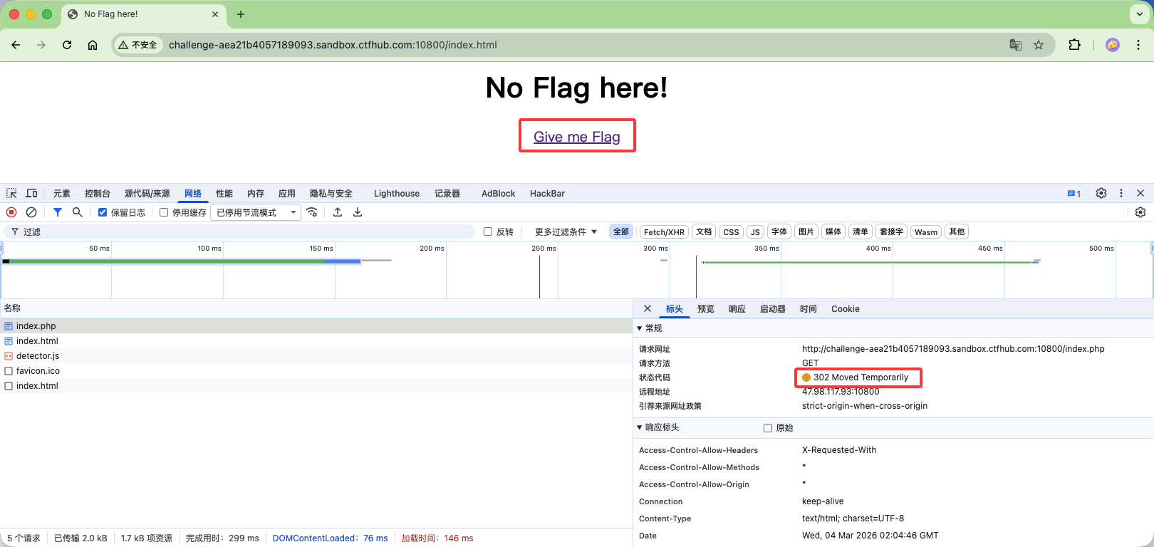 | curl | 不自动跟随重定向 | 直接显示 index.php 的原始响应(包含 Flag) |