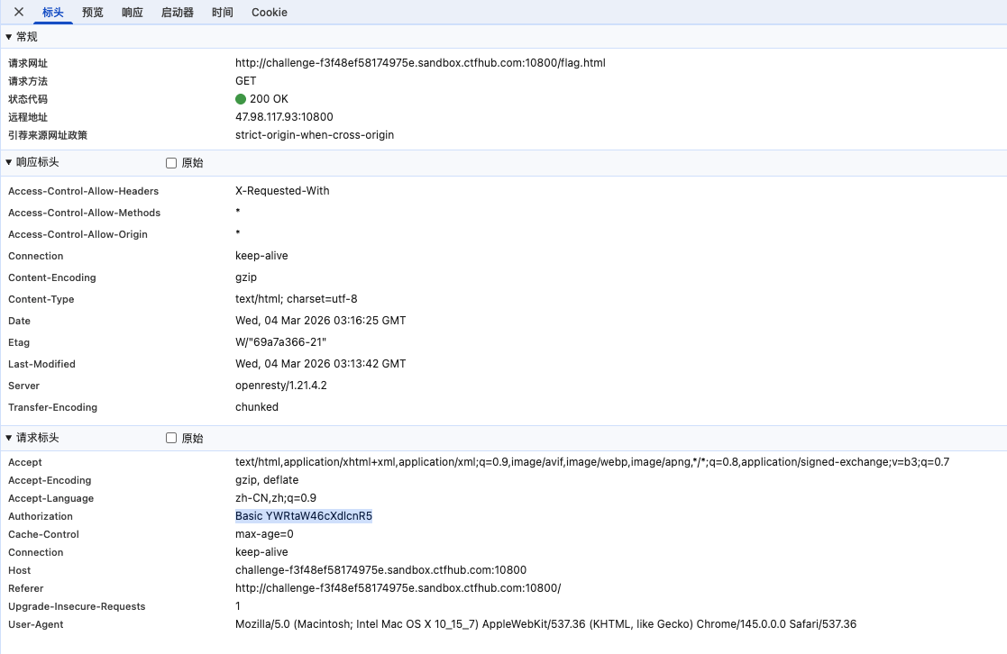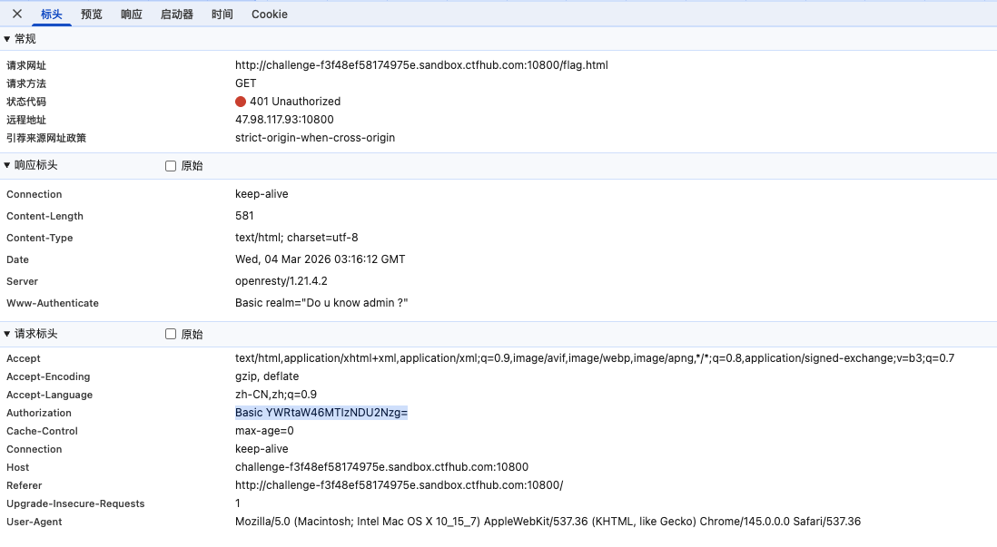 不过虽然这个题目很简单,但是我们还是值得看一看基础认证长什么样的。